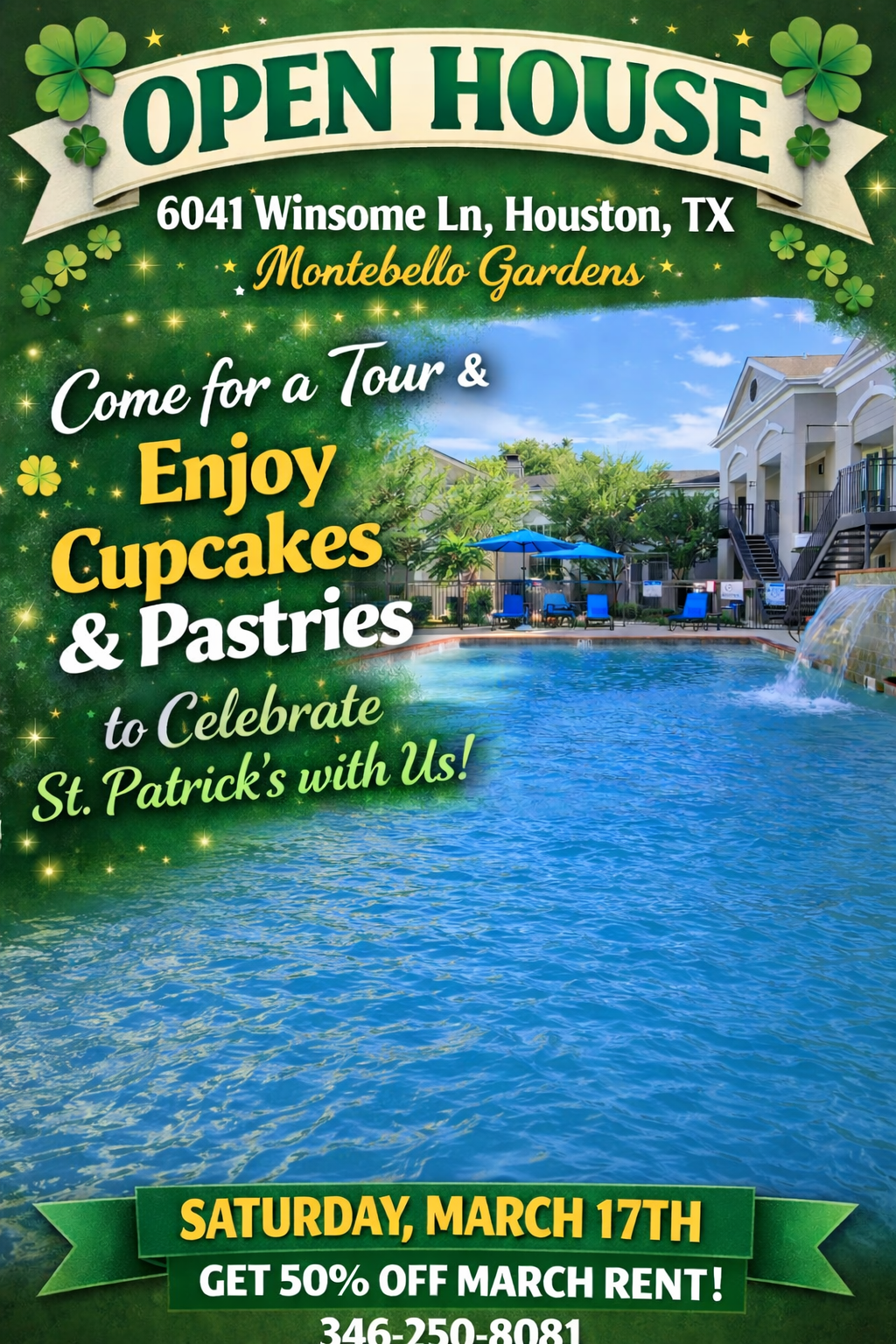 🎉 Luck is in the air! 🎉For a limited time only!!! Offering half off March rent.